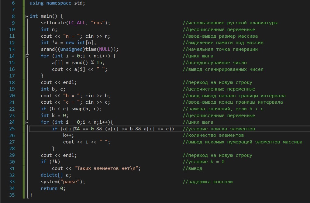 элементов, кратных 4 и попадающих в заданный интервал, включая