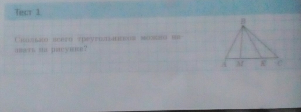 Треугольник АВС,АВМ,ВМК,ВКС,АВК,ВМС там несколько в одном