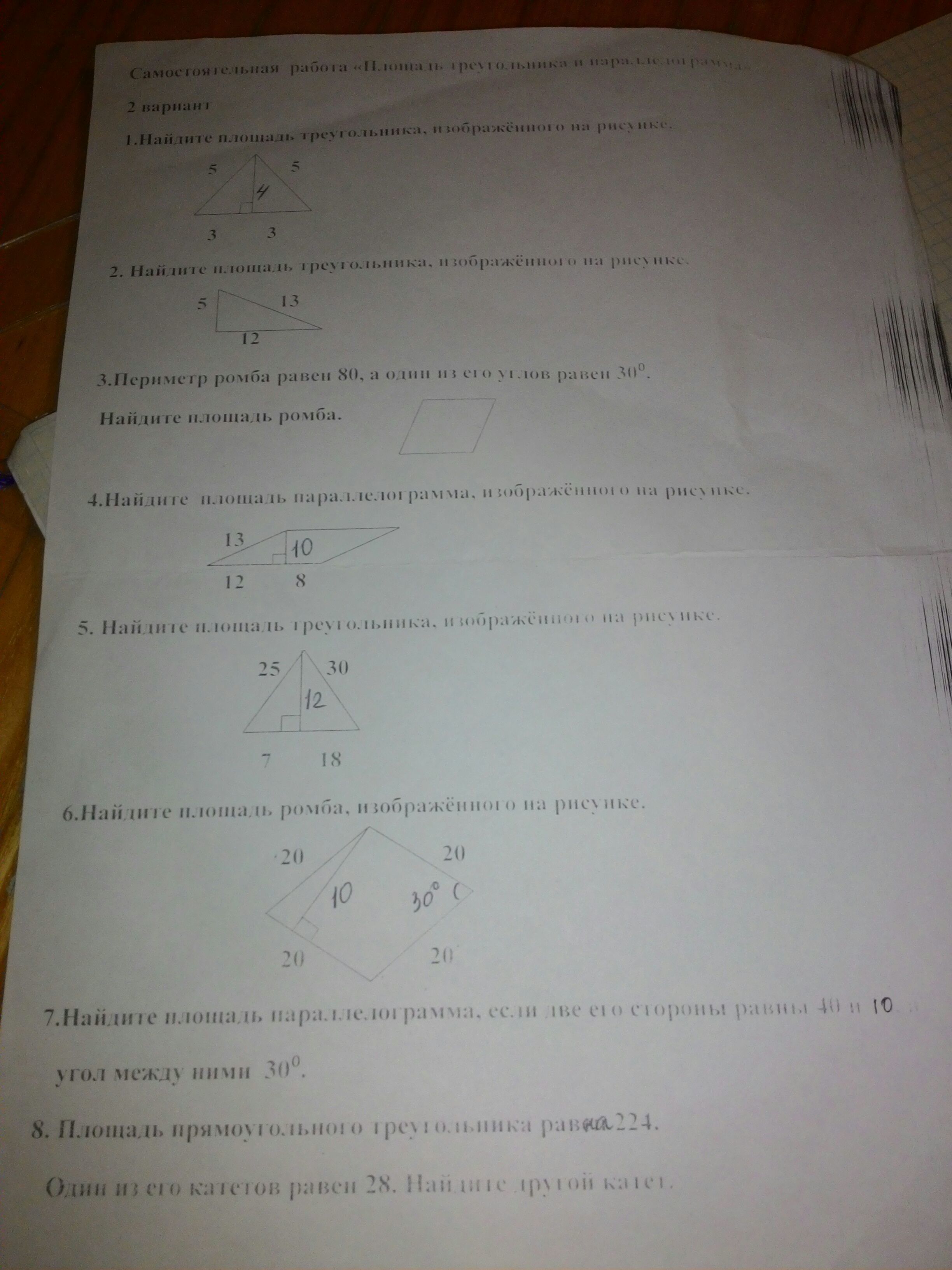 6)10•20=200 соединил верхнюю и нижнюю вершины и получим два равных треугольника а площадь одного из них равна 10•20:2=100
