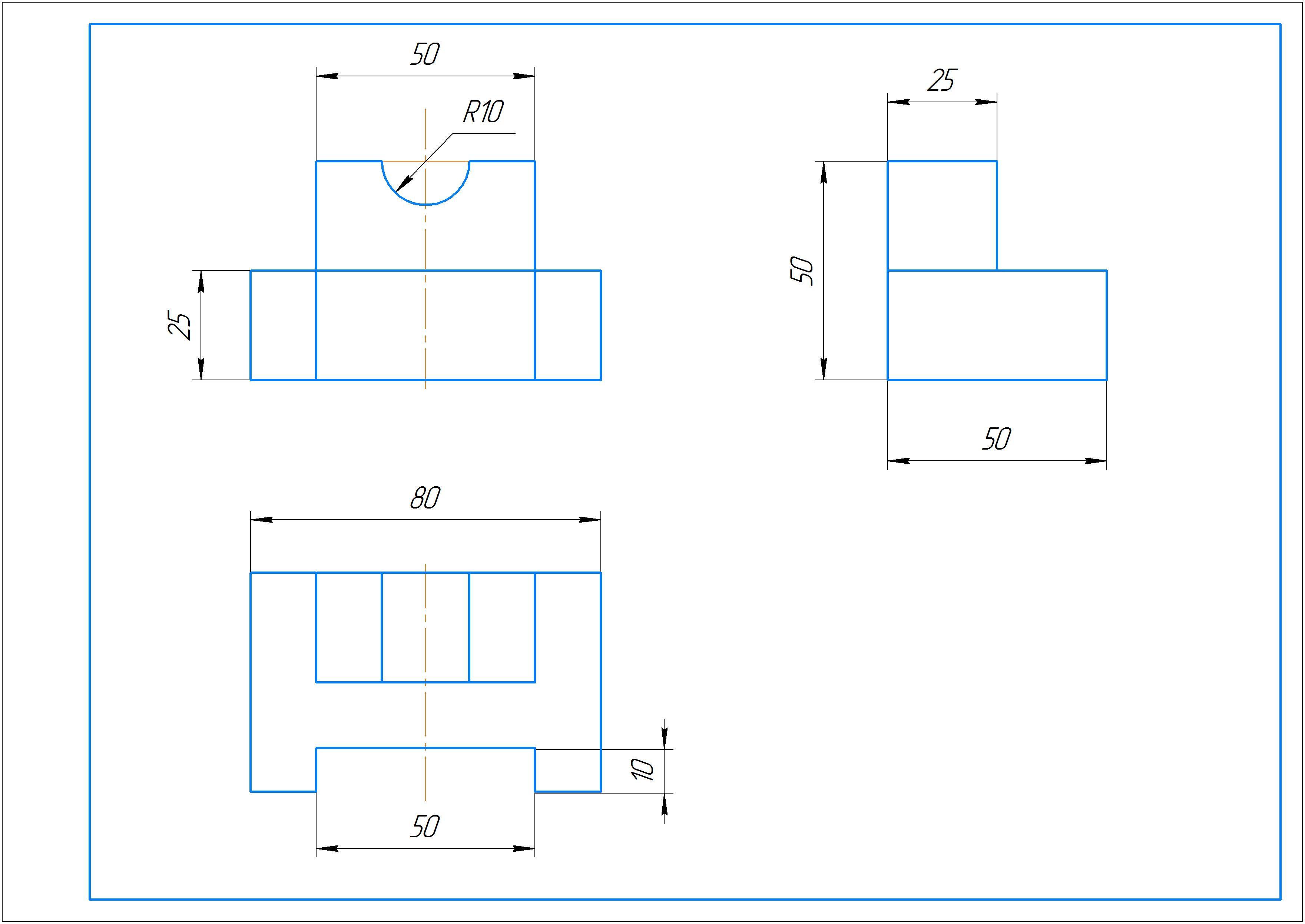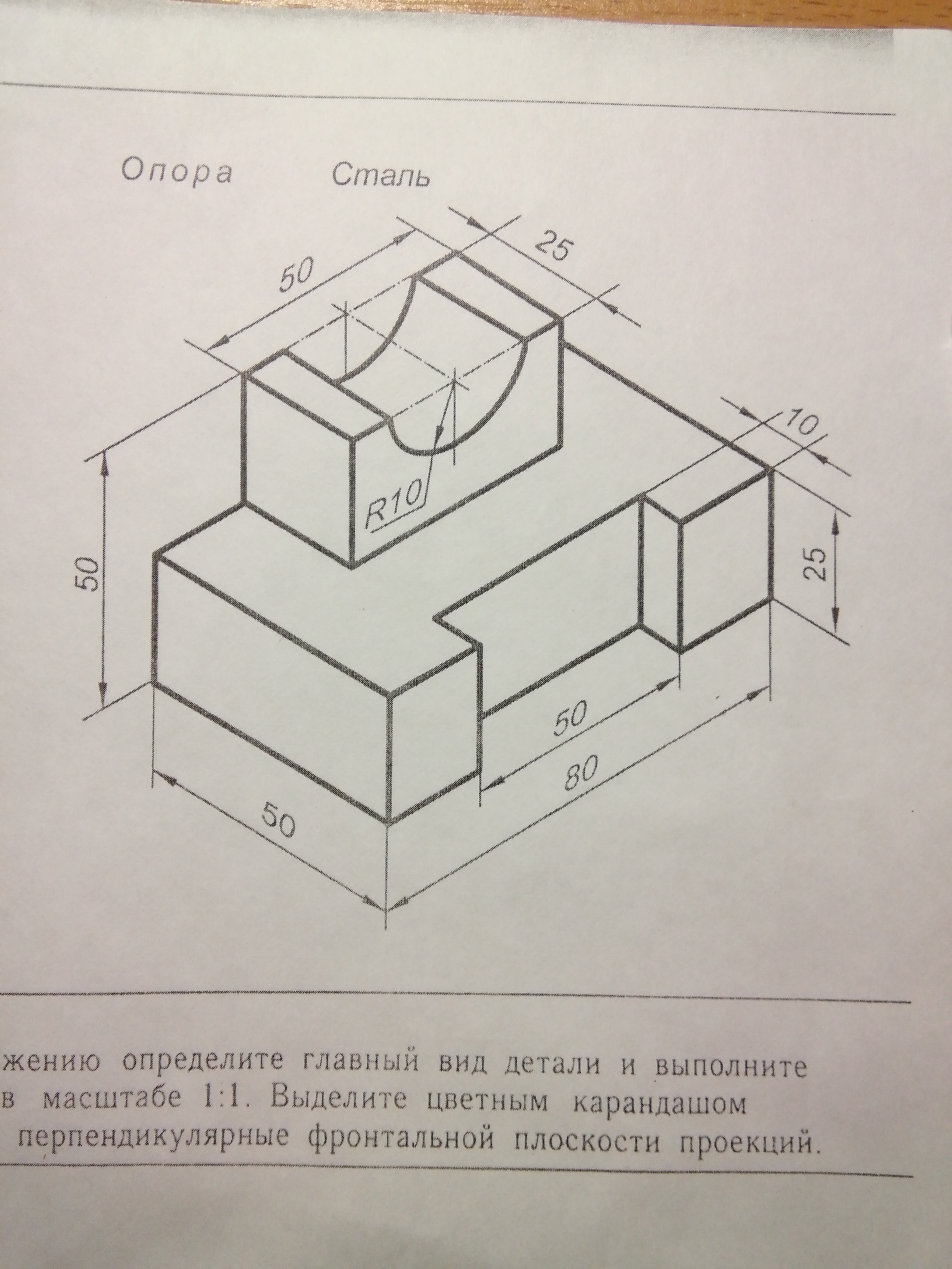 Помогите нарисовать 3 вида этого чертежа, сбоку, сверху и главный вид, спасибо.