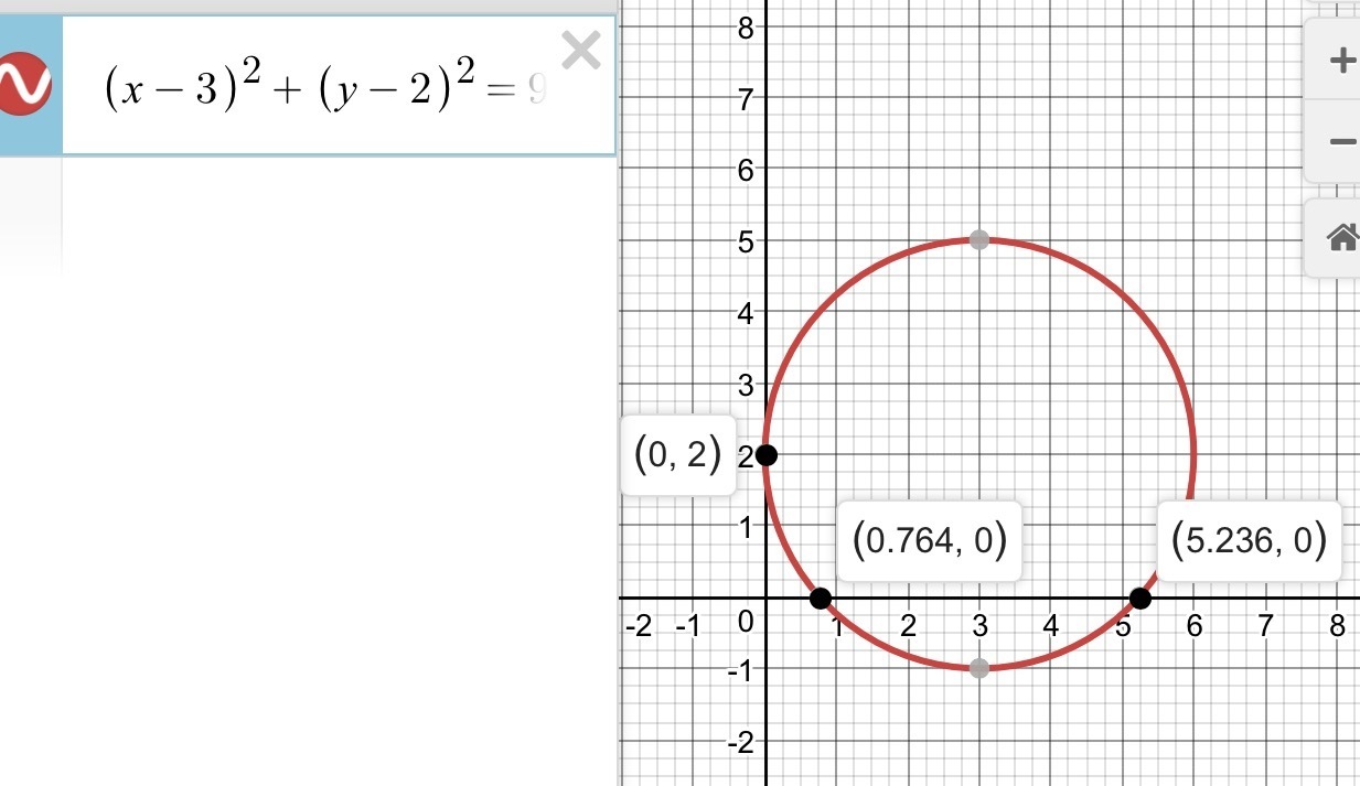 Коло рівняння якого (х-3)2+(у-2)2=9 дотикаються осі ОУ у точці