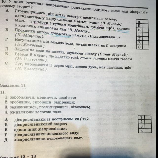 Завдання 11. Відповідь: 1В, 2Г, 3А, 4Б.