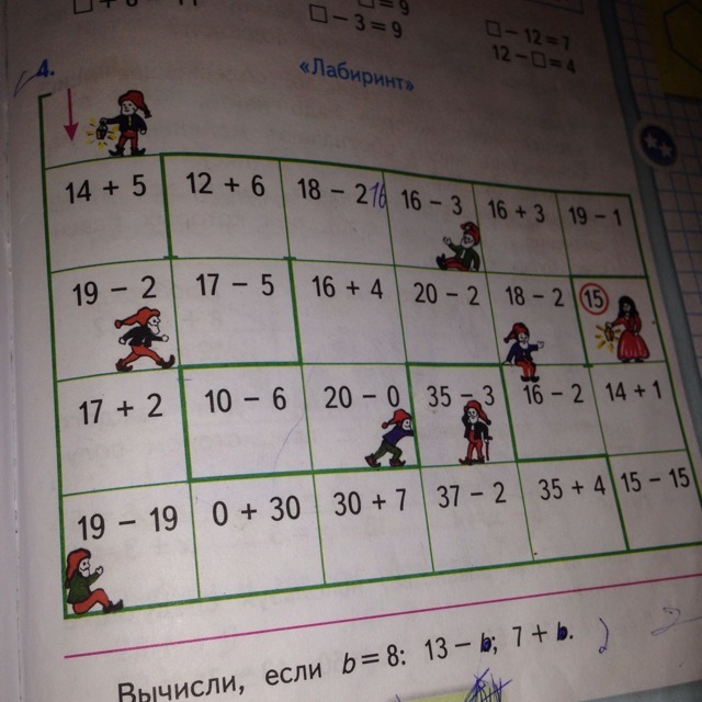 14 + 5 дальше 19 - 2 дальше 17 - 2 затем 12 + 6 потом 18 - 2 затем 16 + 4 потом 20 - 2 затем 18 - 2 дальше 16 - 2 и 14 + 1 = 15
