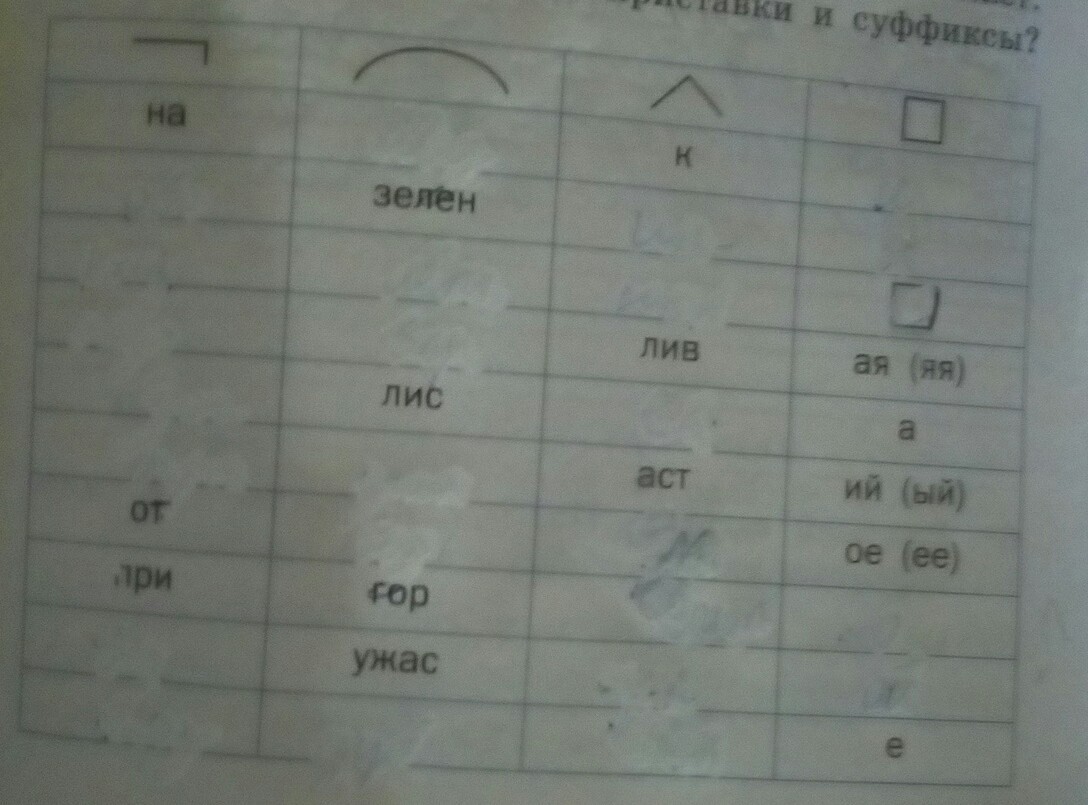заполни пропуски в таблице построй имена существительные и прилагательные
