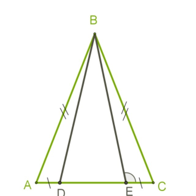 ABD=BEC по двум сторонам и углу между ними =>BD=BE=>BDE равнобедренный=> <BDE=<BED