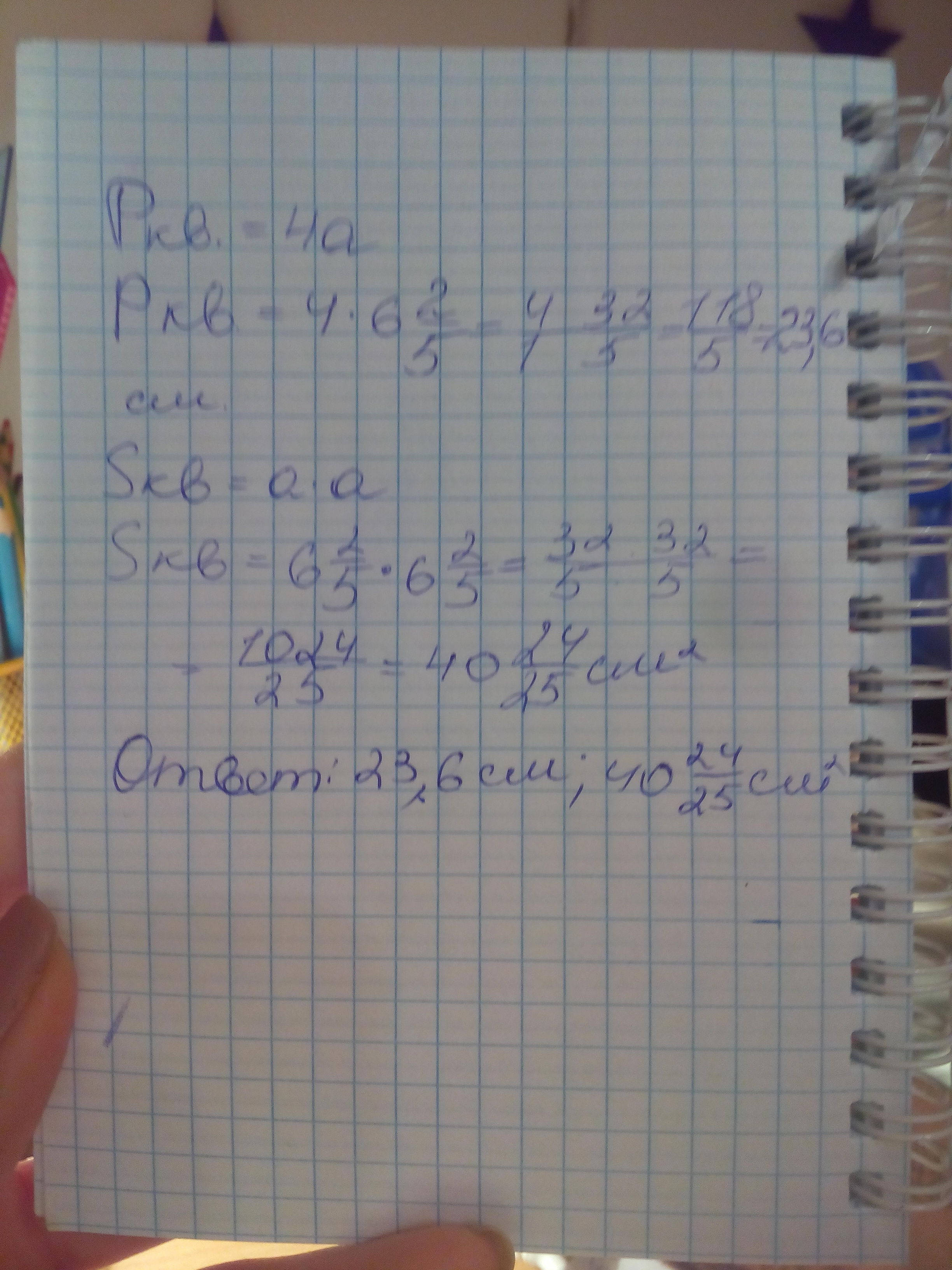 S = а² = 32/5 * 32/5 = 1024/25 = 40 24/25