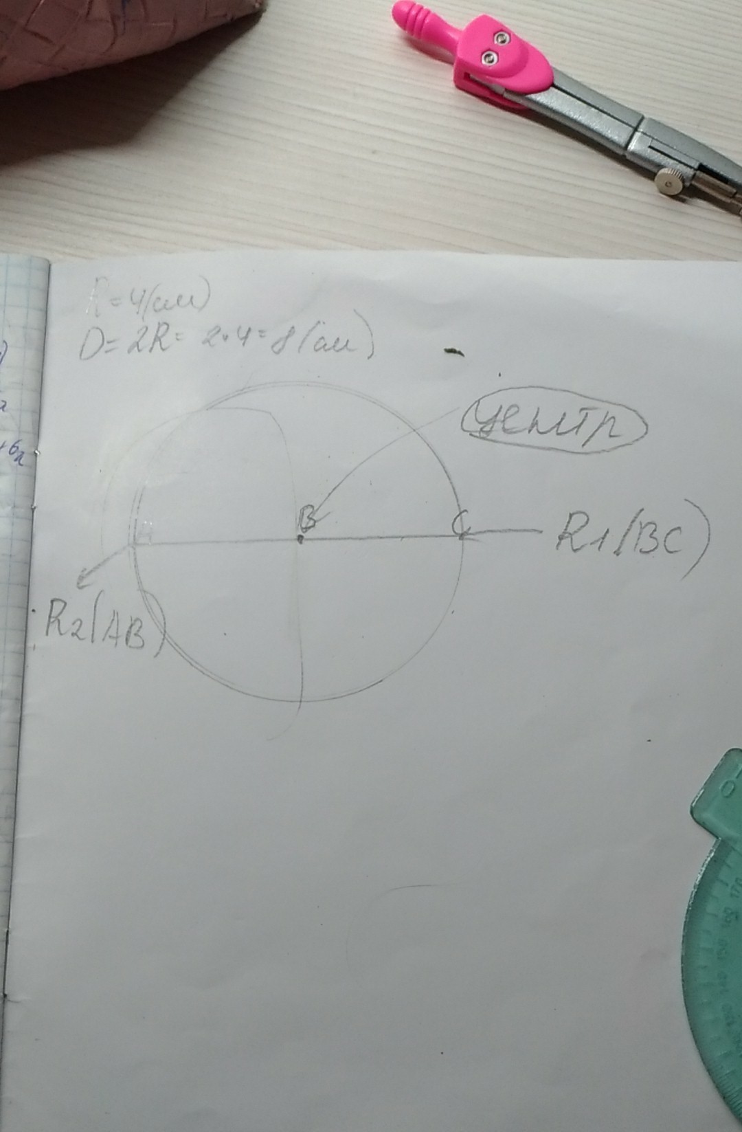 Накресли коло.радіус якого дорівнює 4см. познач центр кола.проведи два радіуса. познач и їх буквами латинського алфавіту.