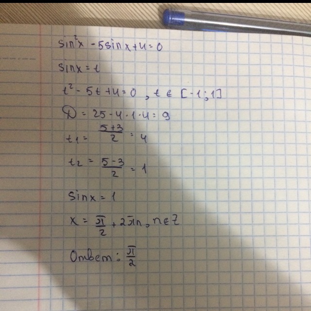 Нам нужен наименьший корень для этой серии решений, то есть если вместо n подставить -1, то получится отрицательный, если 1, то получится 5П/2, а нам нужен наименьший следовательно n=0 и равно П/2
