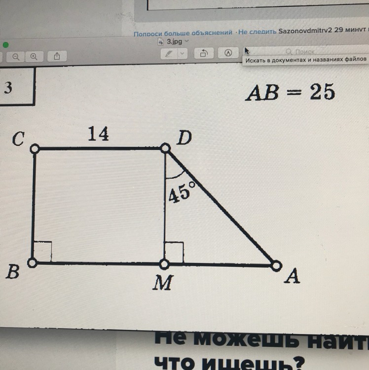 АВ = 25, ВМ=14, МА= 25-14=11.