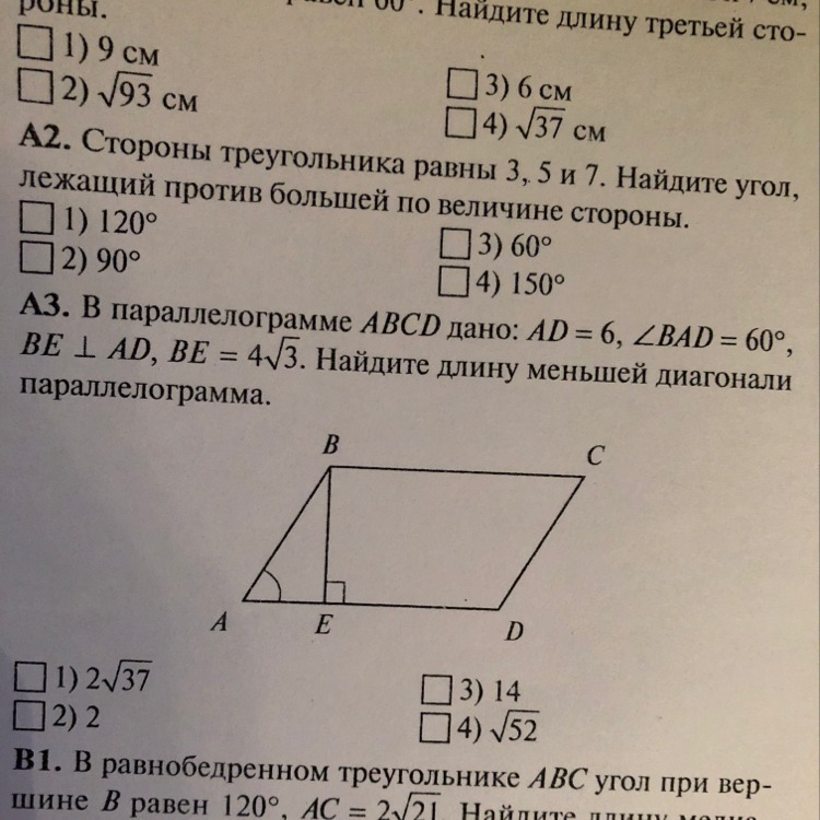 ну без тригонометрии обозначаем AE за х и находим его через теорему Пифагора для треугольника ABE (ну там вместо гипотинузы 2AE)