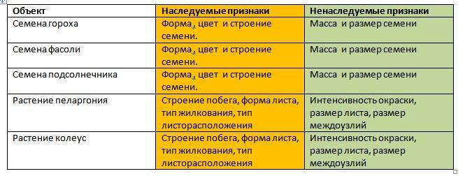 Передаются по наследству видовые признаки - тип и строение семени, строение побега, форма листовой пластинки и ее цвет, тип листорасположения, тип жилкования.