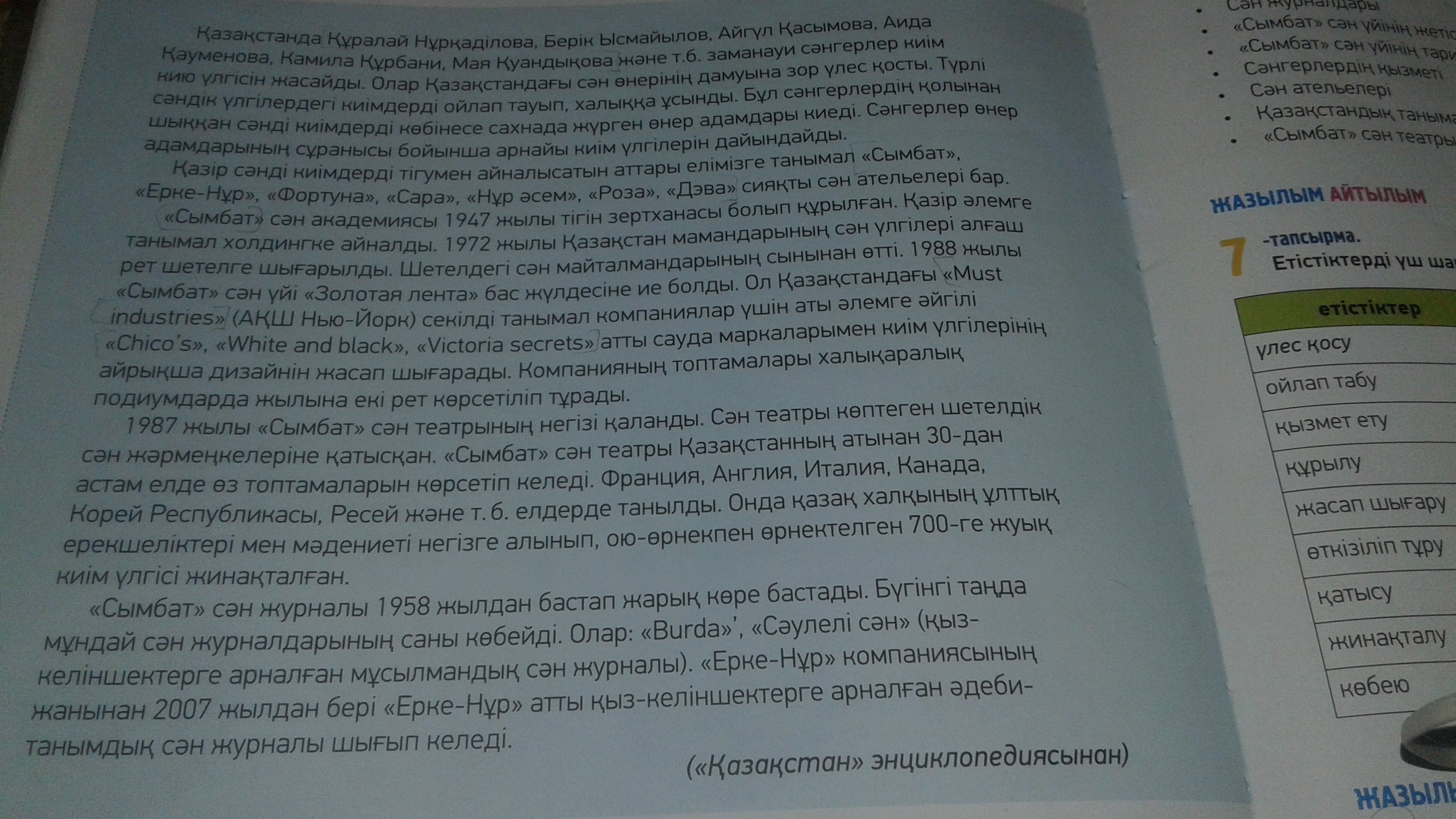 Сəн журналдарының атаулары: «Сымбат», «Burda», «Сәулелі сән», «Ерке нұр».