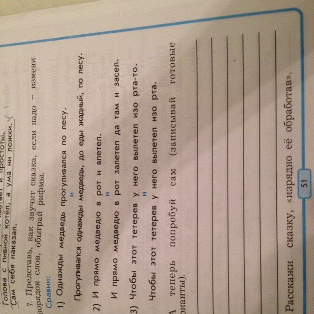 Прогуливался однажды по лесу жадный медведь. Идет, и мёд ест. И тут прямо ему в рот влетел тетерев, да там и засел. Медведь оскалился. Хотел он , чтобы этот тетерев поскорее у него изо рта вылетел.