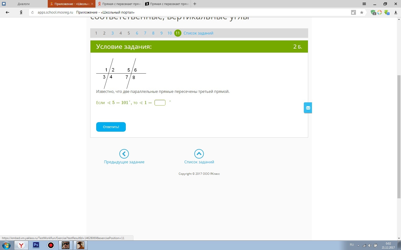 то угол 1 равен 101°(т.к. они соответственные при а║b и с- секущей)