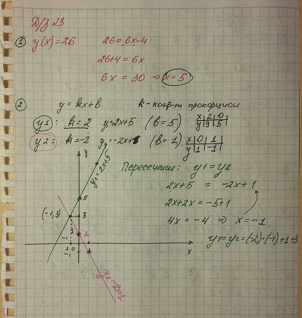 Зелёный текст справа - это то, как высчитывалась точка пересечения, но если ты из интернетурока, то это писать это не обязательно.