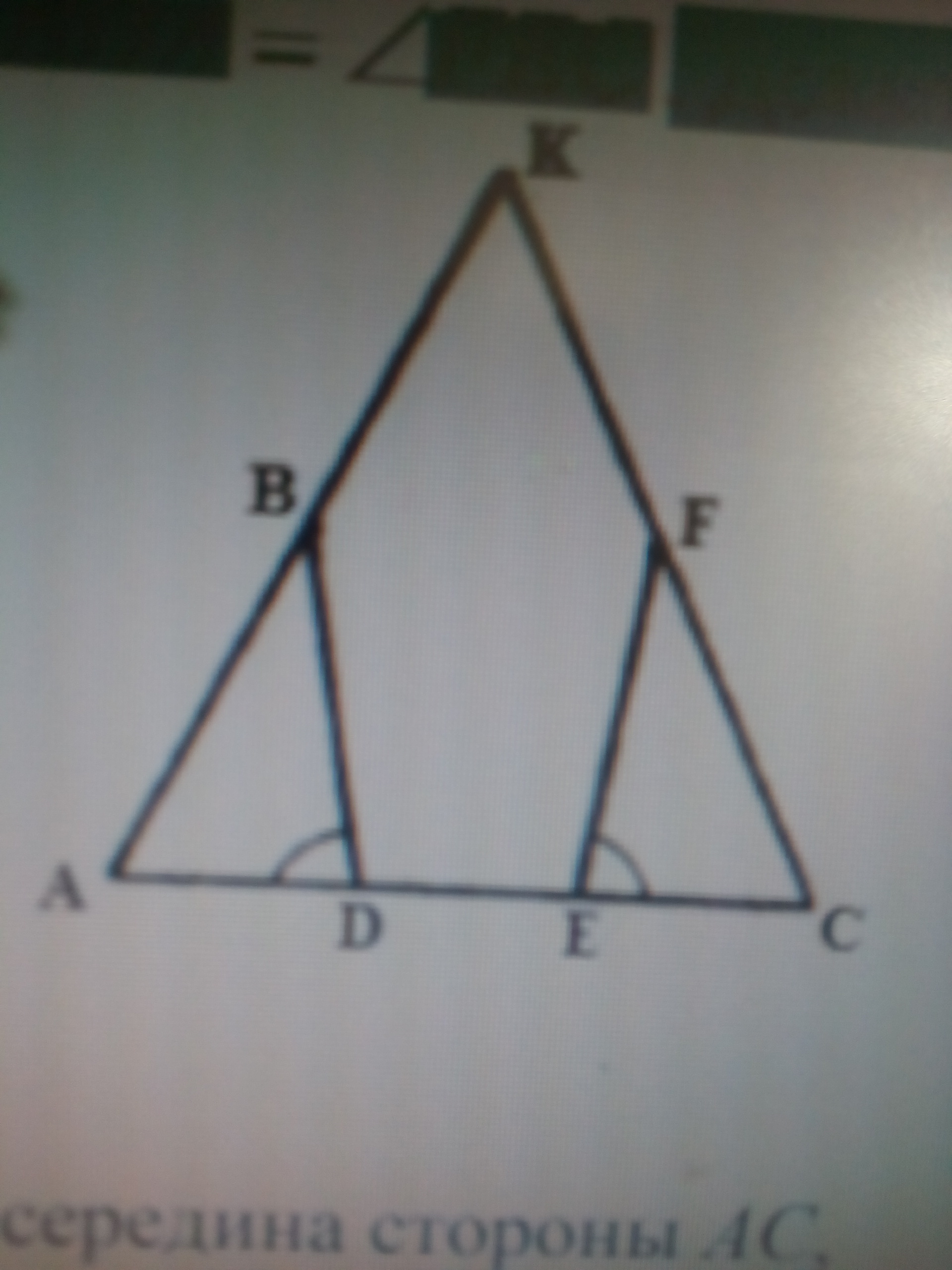тогда треугольники ABD и FEC равны по 2 углам и стороне между ними. Тогда АВ = FC. Тогда BK = KF