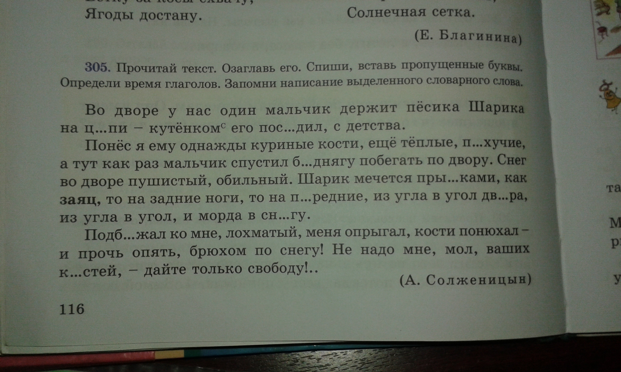 Прочитай текст Озаглавь его Спиши Вставь пропущенные буквы Определи время глаголов Запомни написание выделенного словарного слова