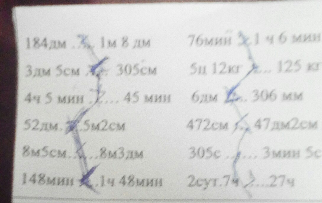 184 дм = 18 м 4 дм > 1 м 8 дм