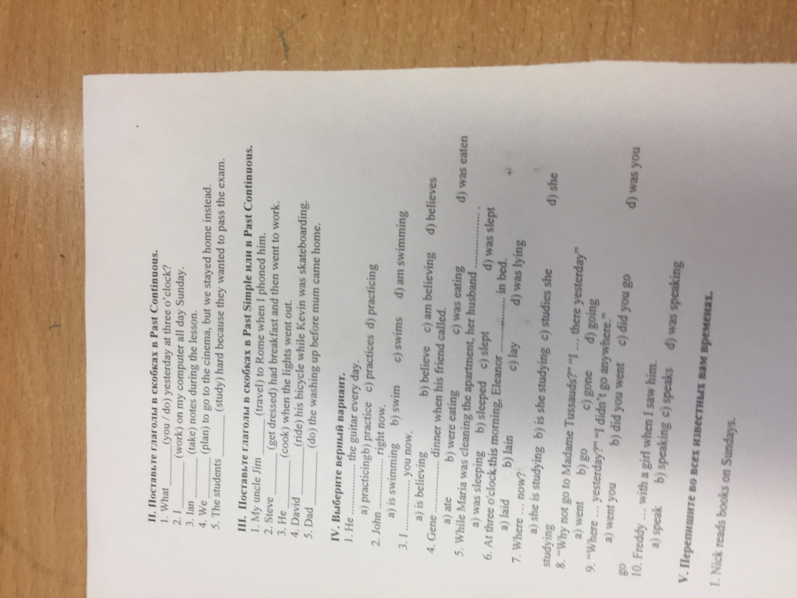 2) was working 3) was taking 4) were planning 5) were studying