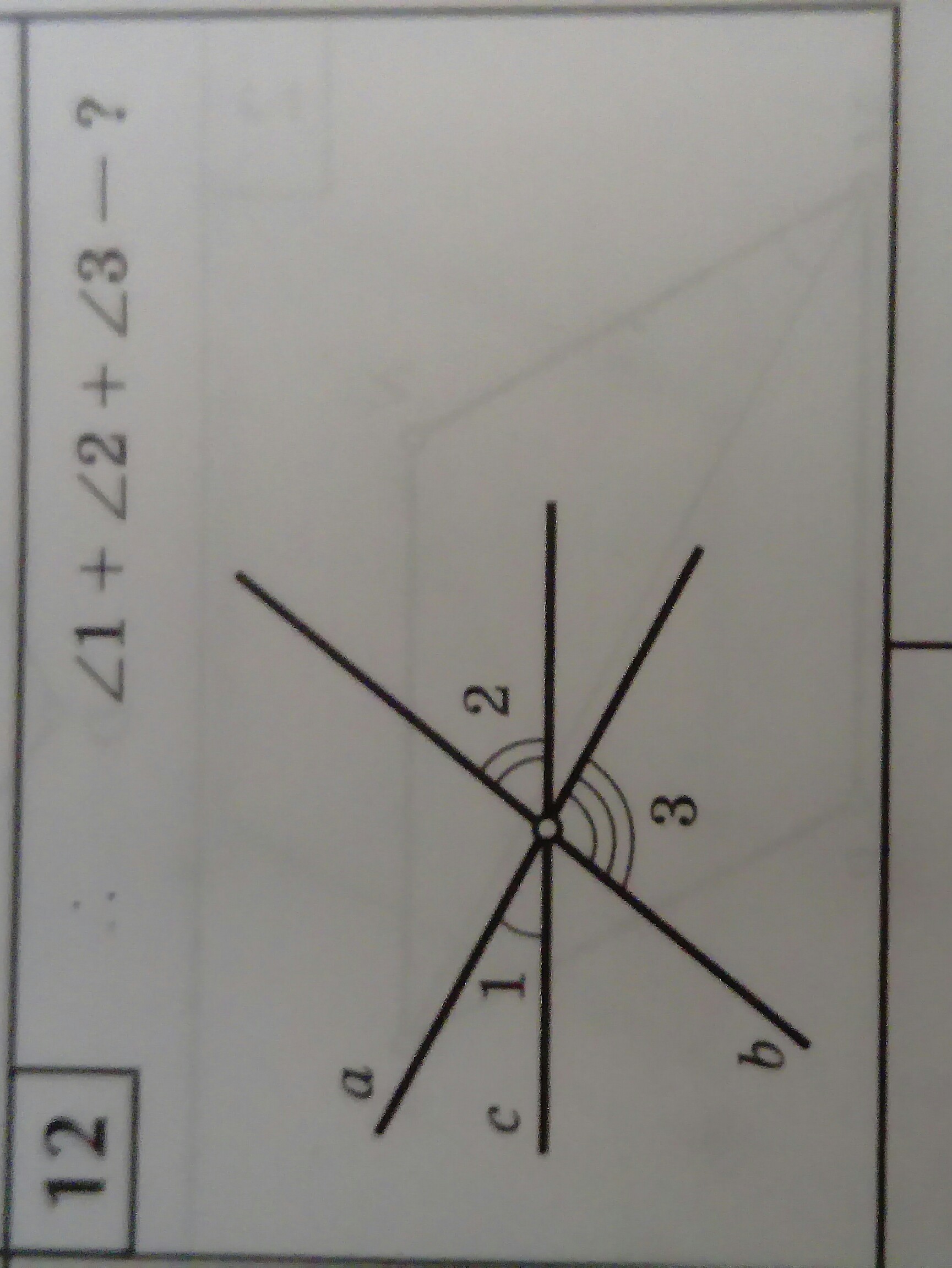 Сумма всех углов, образованных пересекающимися прямыми равна 360 градусов, при этом все соответственно накрест лежащие углы равны, из этого следует, что сумма углов 1,2 и з равна 360/2=180