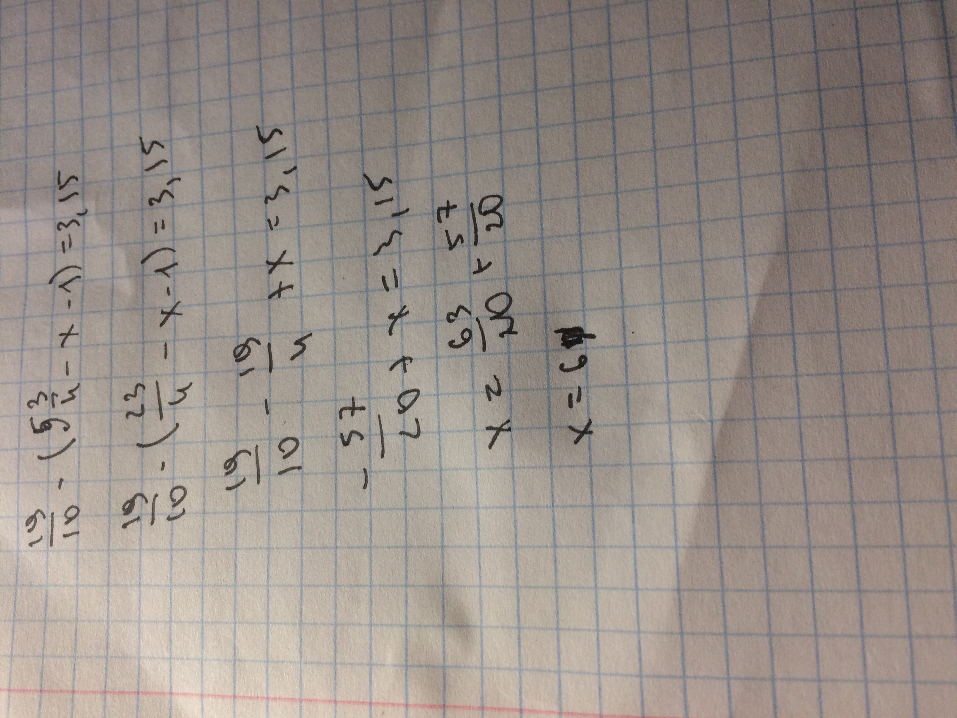 решите уравнение 1.9-(5 3/4-(х+1))=3.15