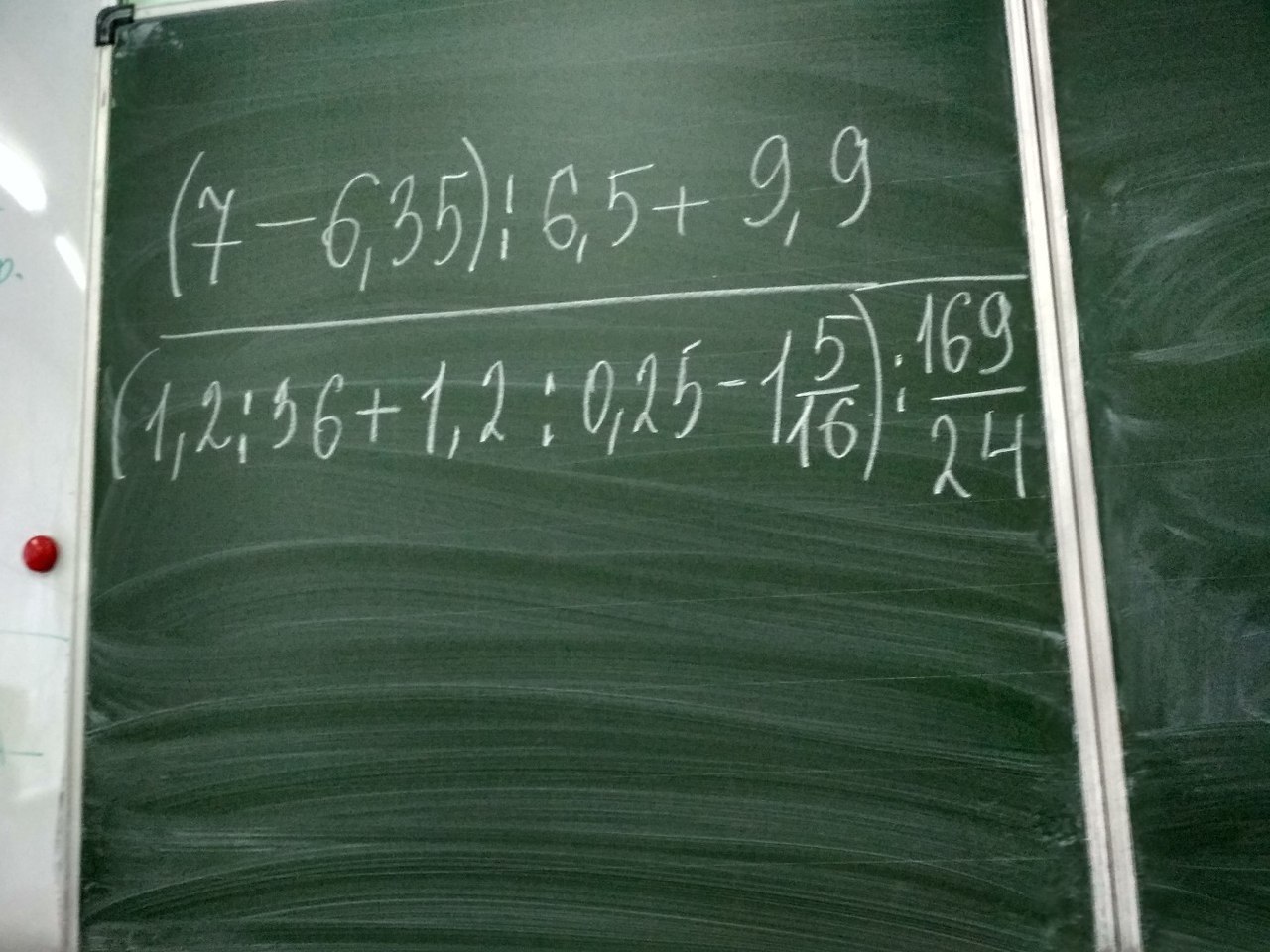 (1.2 ÷(1)36 +(3)1.2 ÷(2)0.25 -(4)1516) ÷(5)16924 = 12(1) 1.2 ÷ 36 = 12360 = 1 • 1230 • 12 = 130 (2) 1.2 ÷ 0.25 = 1200250 = 24 • 505 • 50 = 445 (3) 130 + 445 = 130 + 245 = 1 + 6 • 2430 = 14530 = 29 • 56 • 5 = 456 (4) 456 - 1516 = 296 - 2116 = 8 • 29 - 3 • 2148 = 16948 = 32548 (5) 32548 ÷ 16924 = 16948 ÷ 16924 = 169 • 2448 • 169 = 40568112 = 1 • 40562 • 4056 = 12