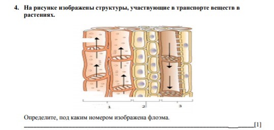 На рисунке изображены структуры , участвующие в транспорте веществ в растениях.Определите, под каким номером изображена флоэма
