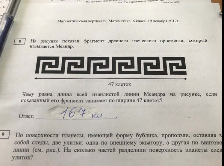 Ширина каждого завитка, кроме последнего 8 клеток (у последнего 7 клеток). Каждый завиток состоит из 28 клеток. Таких завитков 6. Но в последнем завитке не хватает одной клетки.