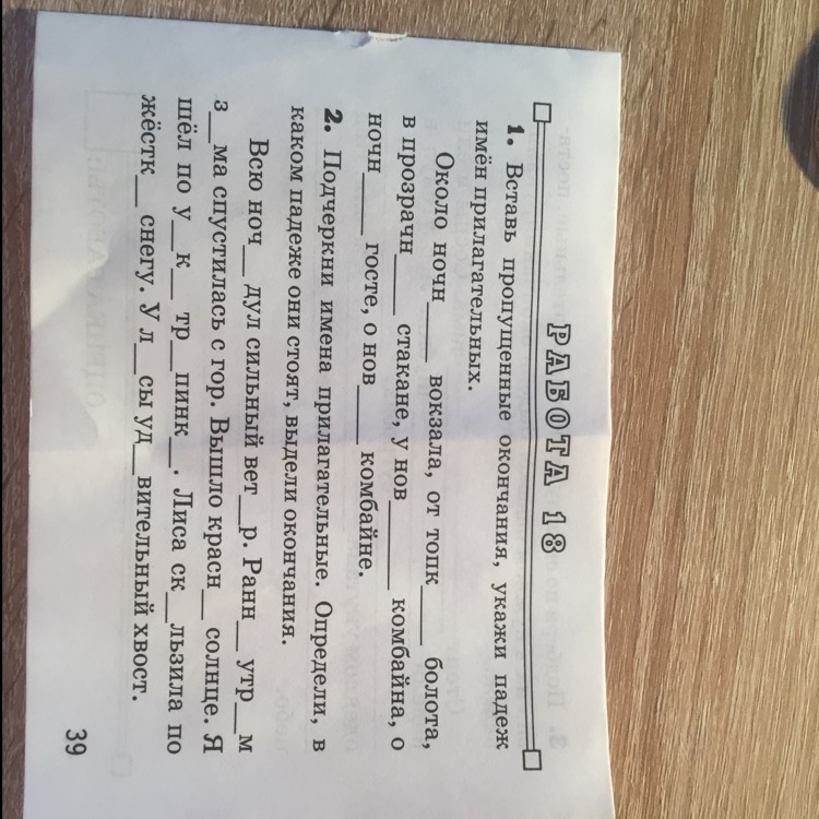 Здравствуйте! Момогите пожалуйста выполнить эти задания 1) вставь окончания, укажи падеж имен прилагательных
