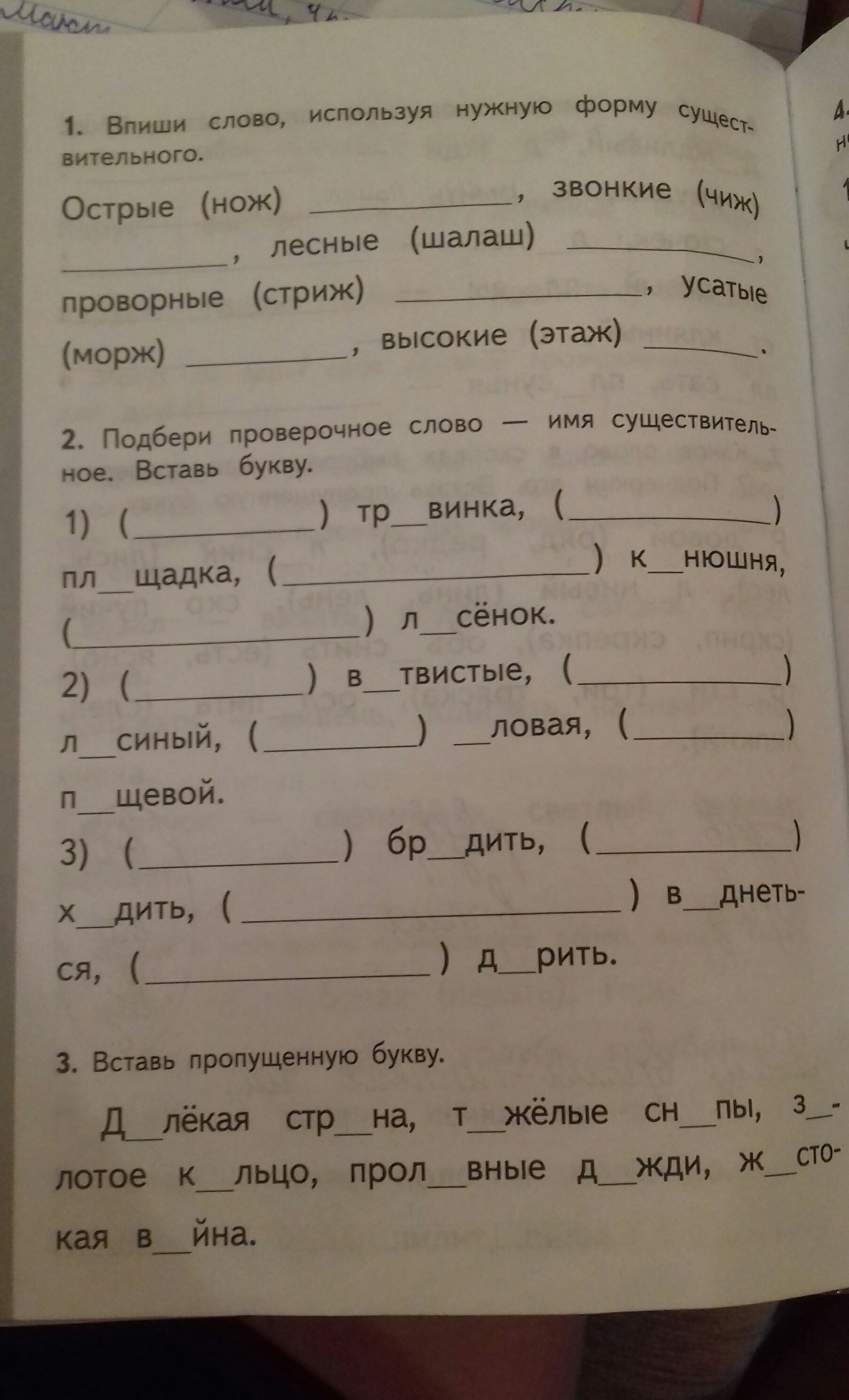 1. Острые ножи, звонкие чижи, лесные шалаши, проворные стрижи, усатые моржи, высокие этажи.