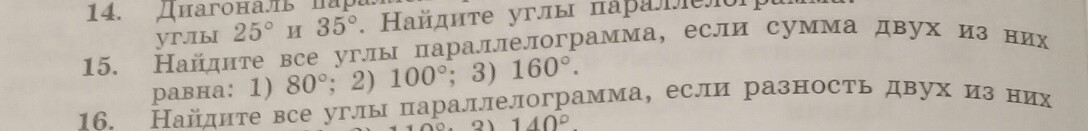3) Сумма 160, один угол 80, второй 180 - 80 = 100.