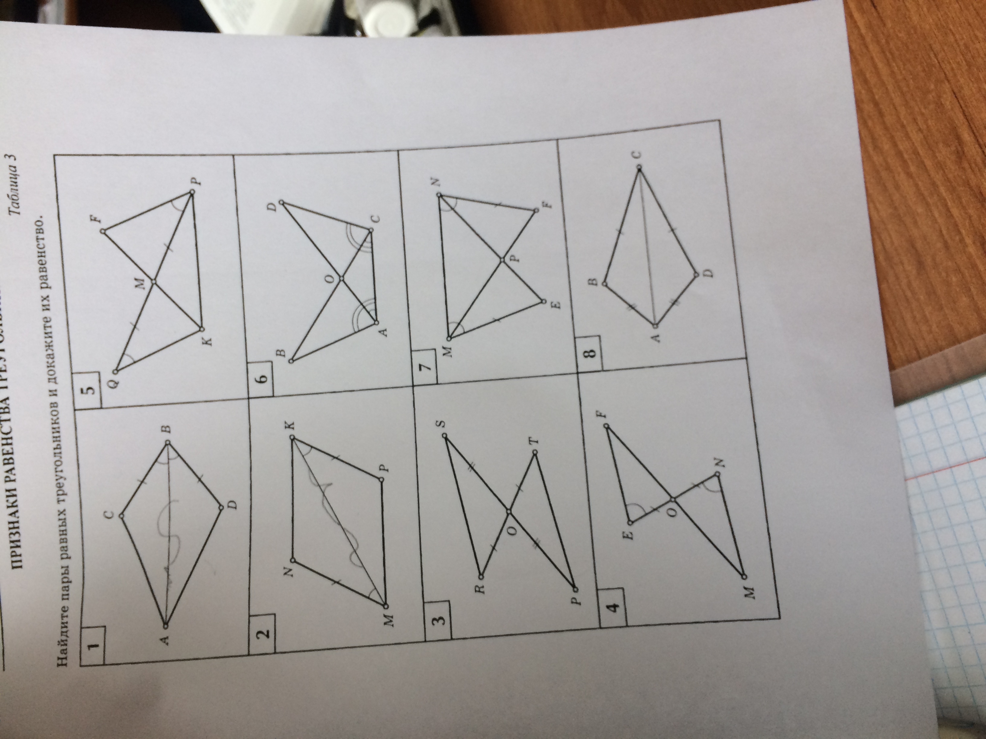 Найдите пары равных треугольников и докажите их равенство. С объяснением пожалуйста .