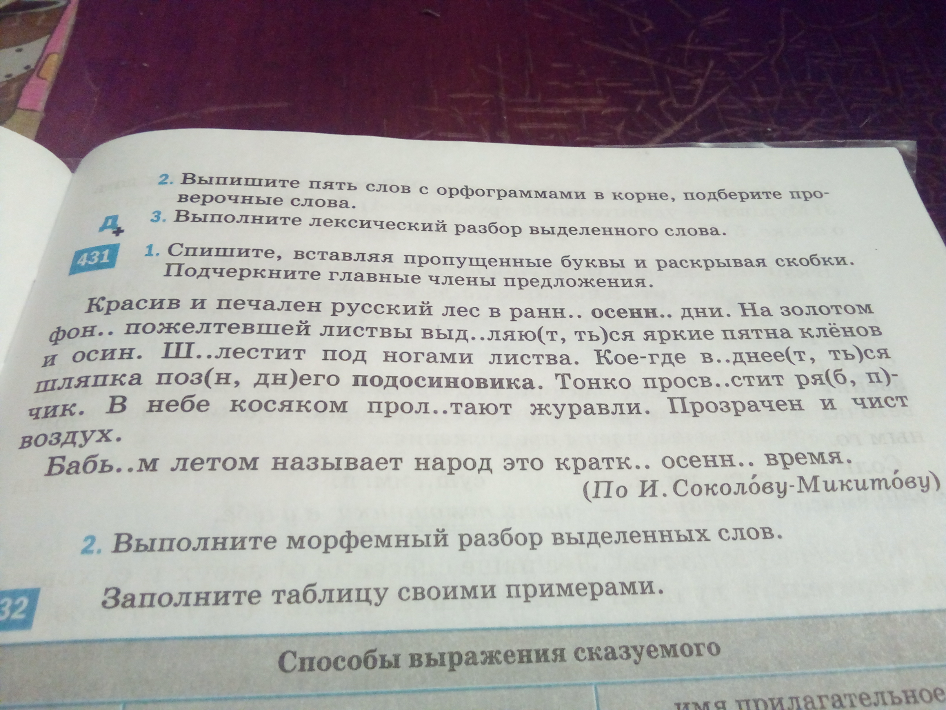 Упр 431 спеши вставляя пропущенные буквы и раскрывая скобки.подчеркните главные члены предложения