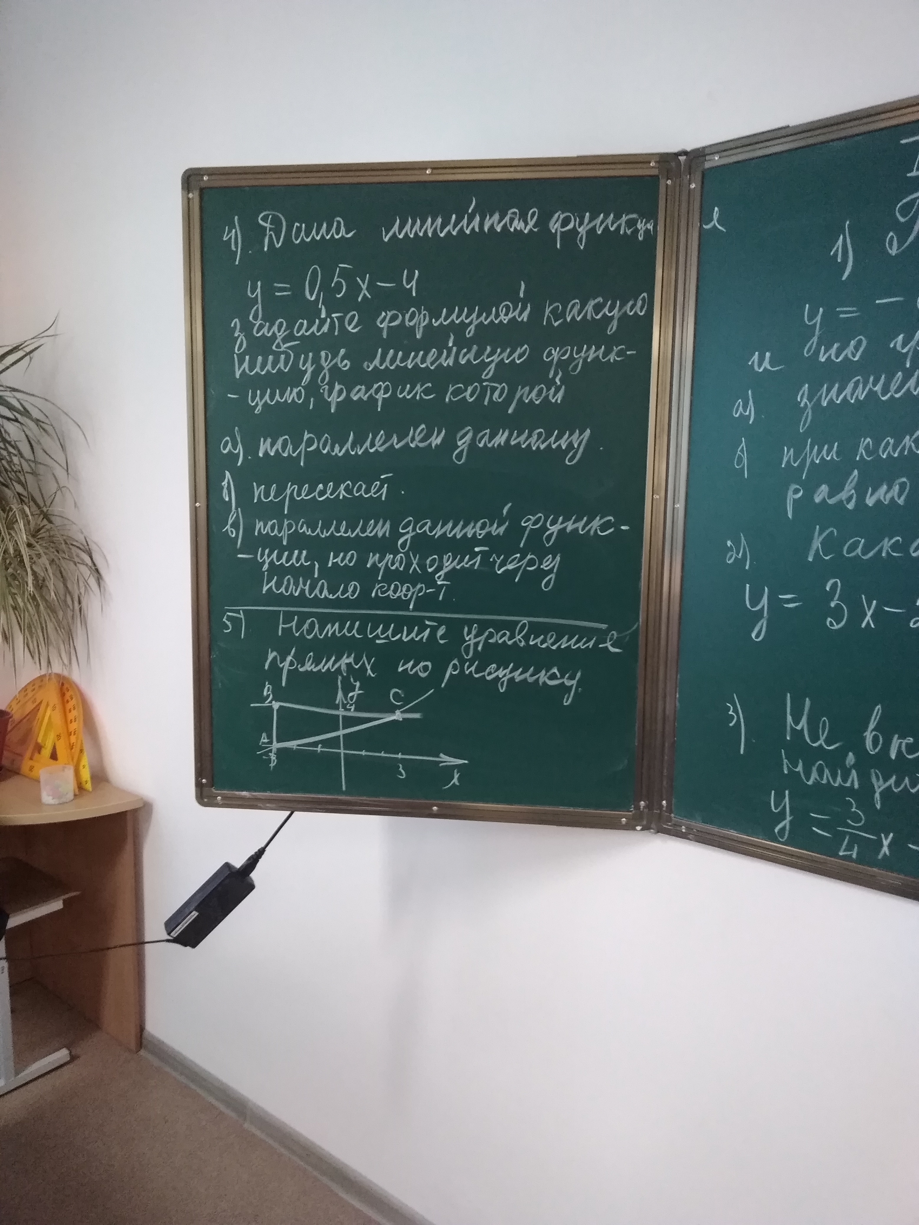 в) параллелен данной функции, но проходит через начало координат, значит k = 0,5 , а b = 0, то есть