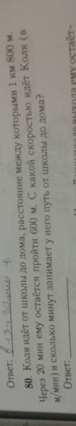 ответ:он проходит за 30 мин от школы до дома,идет со скростью 60м/мин