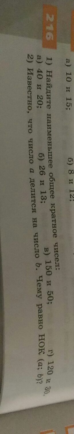 найдите наименьшее общее кратное чисел а) 40 и 20 б) 26 И 13 в) 150 и 50 г) 120 и 30 известно что число a делится на число b . чему равно HOK ( a ; b ) ? помогите пожалуйста пожалуйста пожалуйста пожалуйста пожалуйста пожалуйста пожалуйста пожалуйста пожалуйста пожалуйста пожалуйста