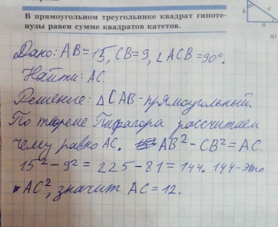 Всё сделала, рисунок уж не рисовала, т.к. он у вас есть... На фото поверх решения есть теорема Пифагора на всякий случай). Там немного неправильно... АВ в квадрате-СВ в квадрате= АС в квадрате. Хотела сразу исправить на листочке, но другую фотографию почему-то нельзя поставить...
