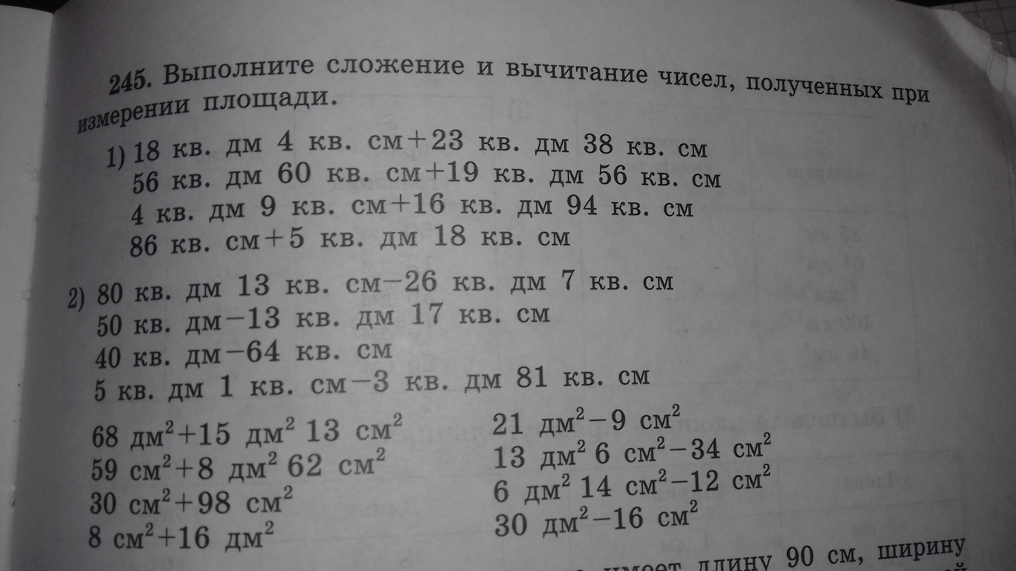 1) 18квдм => 180 кв. см 4см => 184 см + 23квдм => 230 см 38квсм => 268 кв см = 184 + 268 = 452