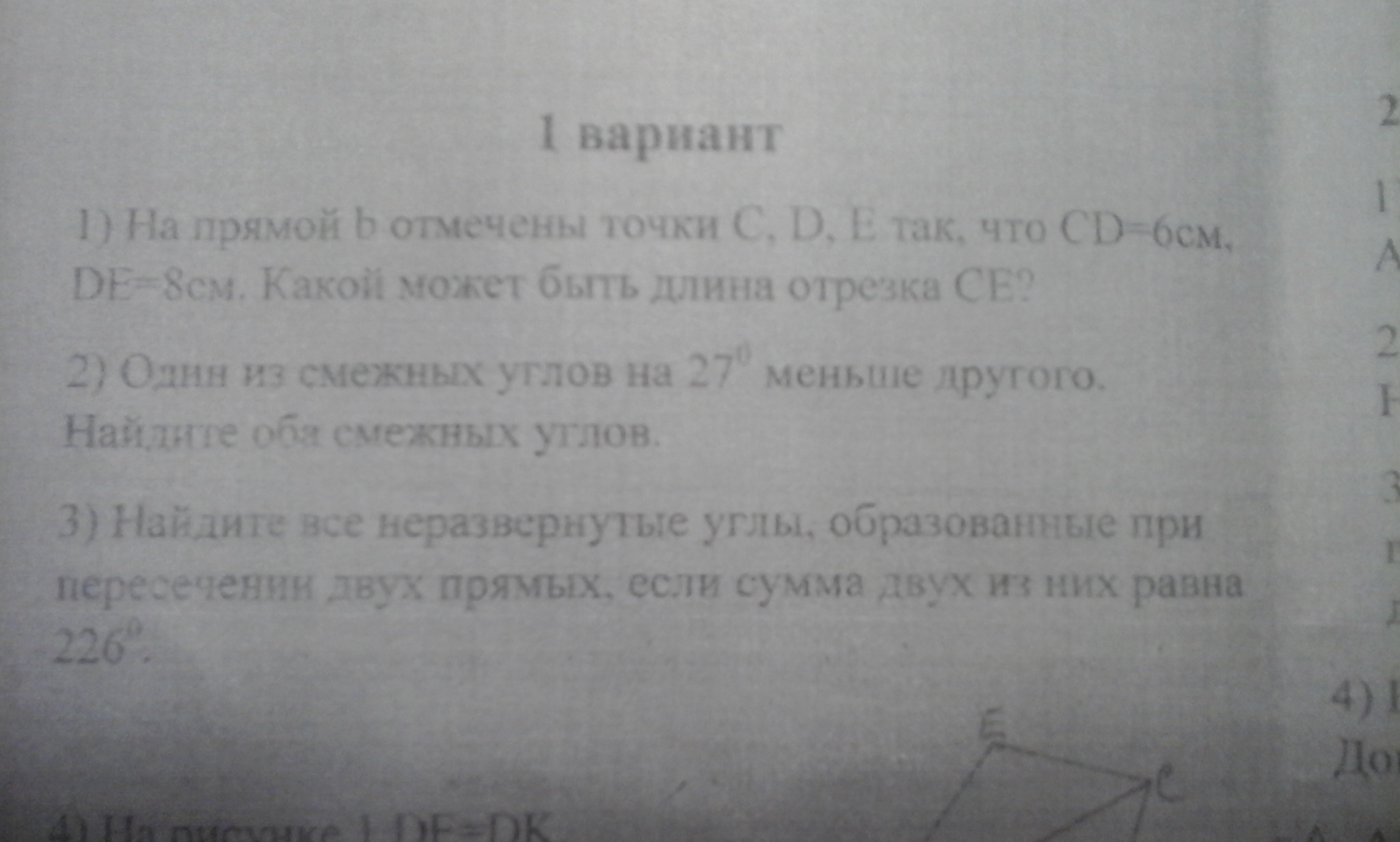 2)Т.к. смежные углы в сумме дают 90 град., то 1-й угол это 90-27=63, а 2-й угол это 90+27=117