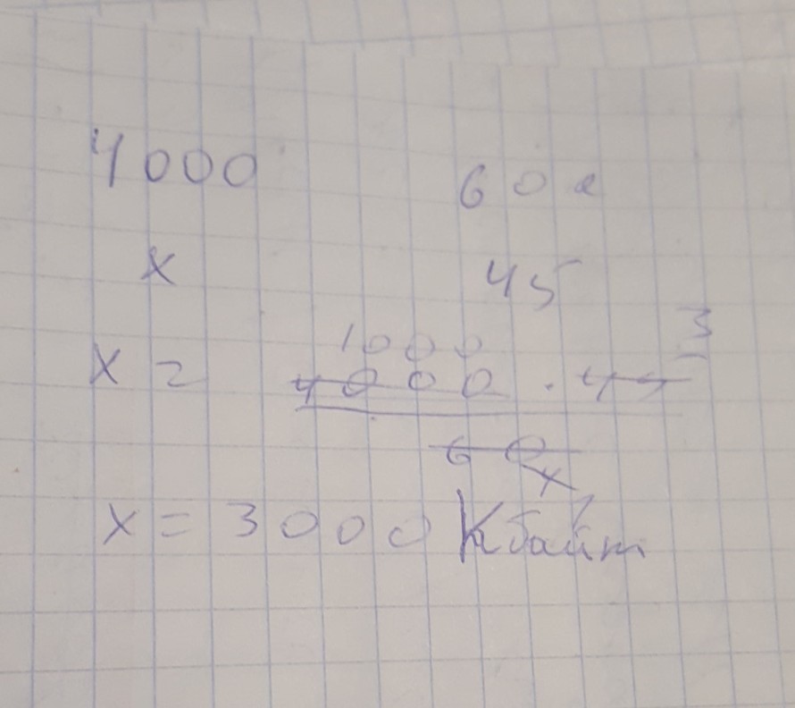 Файл размером 4000 Кбайт передаётся через некоторое соединение в течение 1 минуты. Определите размер файла (в Кбайт), который можно передать через это соединение за 45 секунд. В ответе укажите одно число — размер файла в Кбайт. Единицы измерения писать не нужно.