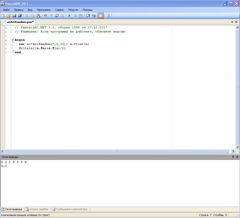 Информатика 9 класс , помогите пожалуйста.1. Дан массив А, состоящий из семи случайных чисел из интервала [0;10]. Найти среднее