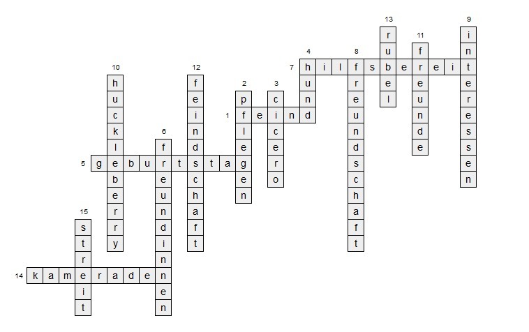 составьте 15вопросов для кроссворда на тему "Freundschaft"