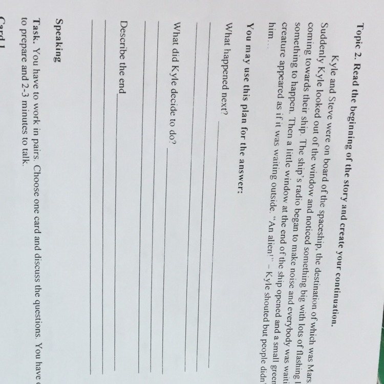 3) Kyle saw alien, radio began make noise, and Kyle said:"ALIEN!". But people didn't believe him.
