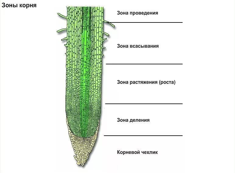 Корни нарастают верхушкой. Потому что там находится зона деления корня. (Конус нарастания можно ещё назвать)