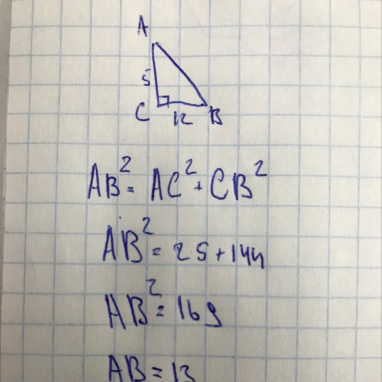ВА^2=ВС^2+АС^2=12^2+5^2=144+25=169