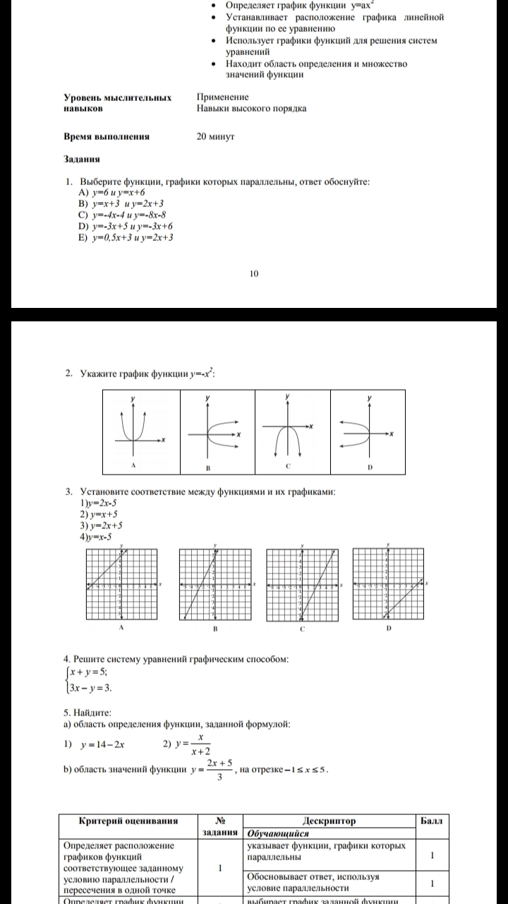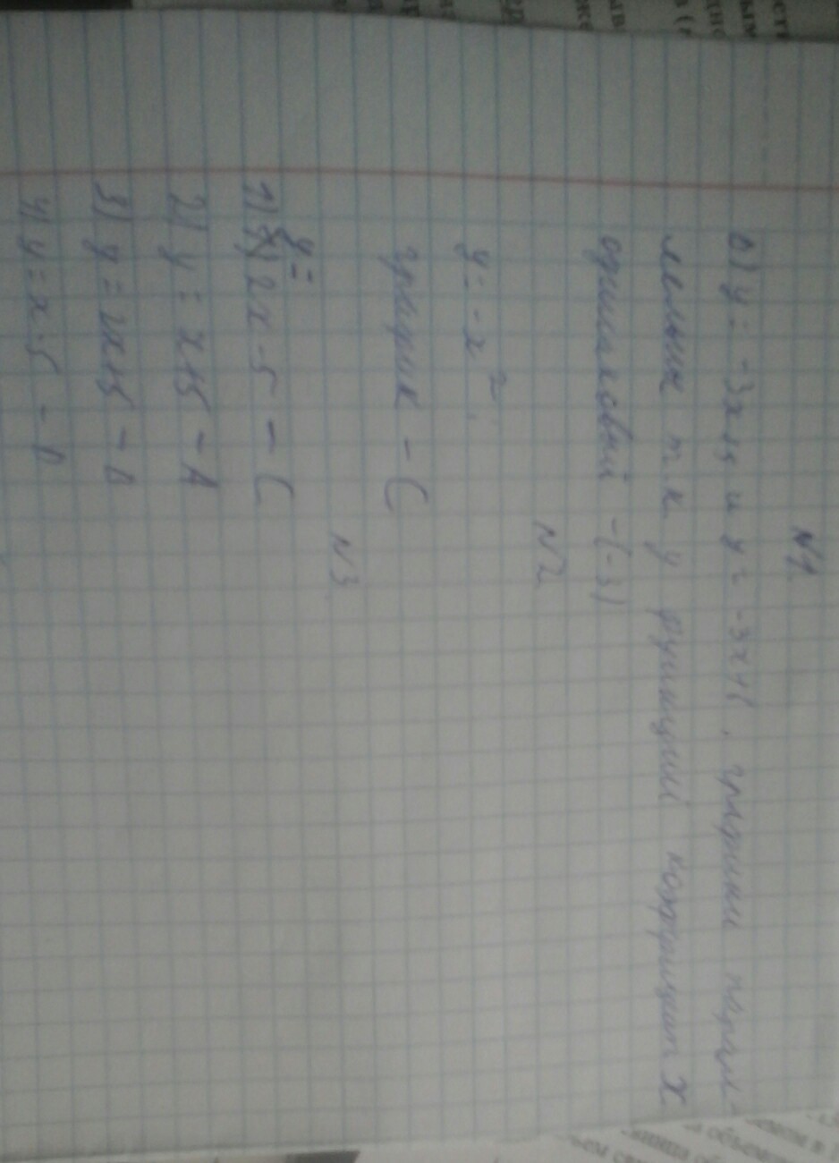 Если не понятно первое то вот: y= -3x + 5 и y = -3x + 6, графики параллельны т.к. у функций коэффицент при x одинаковый = (-3)