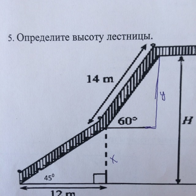x = 14/sin60 = 14:√3/2 = 28/√3 м