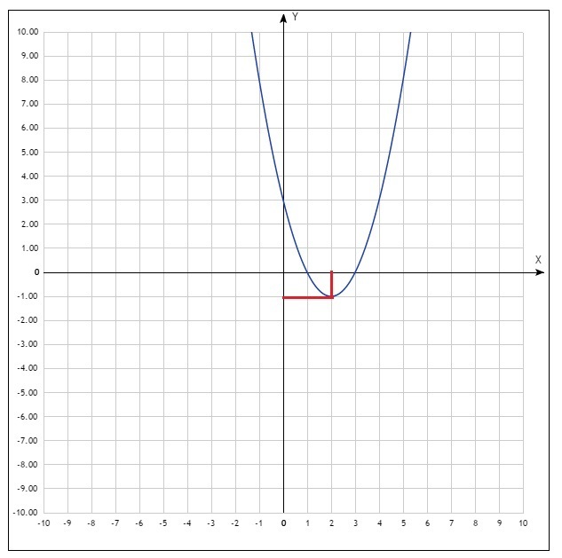 , вершина которой сдвинута на 2 единицы вправо и на 1 единицу вниз