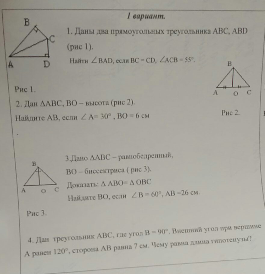 3. У треугольниках сторона ВО общая; ВО биссектриса значит углы равны; и изза того то треуг. АВС равнобедренный стороны АВ и ВС тоже равны. Соедовательно, из 1 теоремв равенства треуголникрв АВО=ВСО;