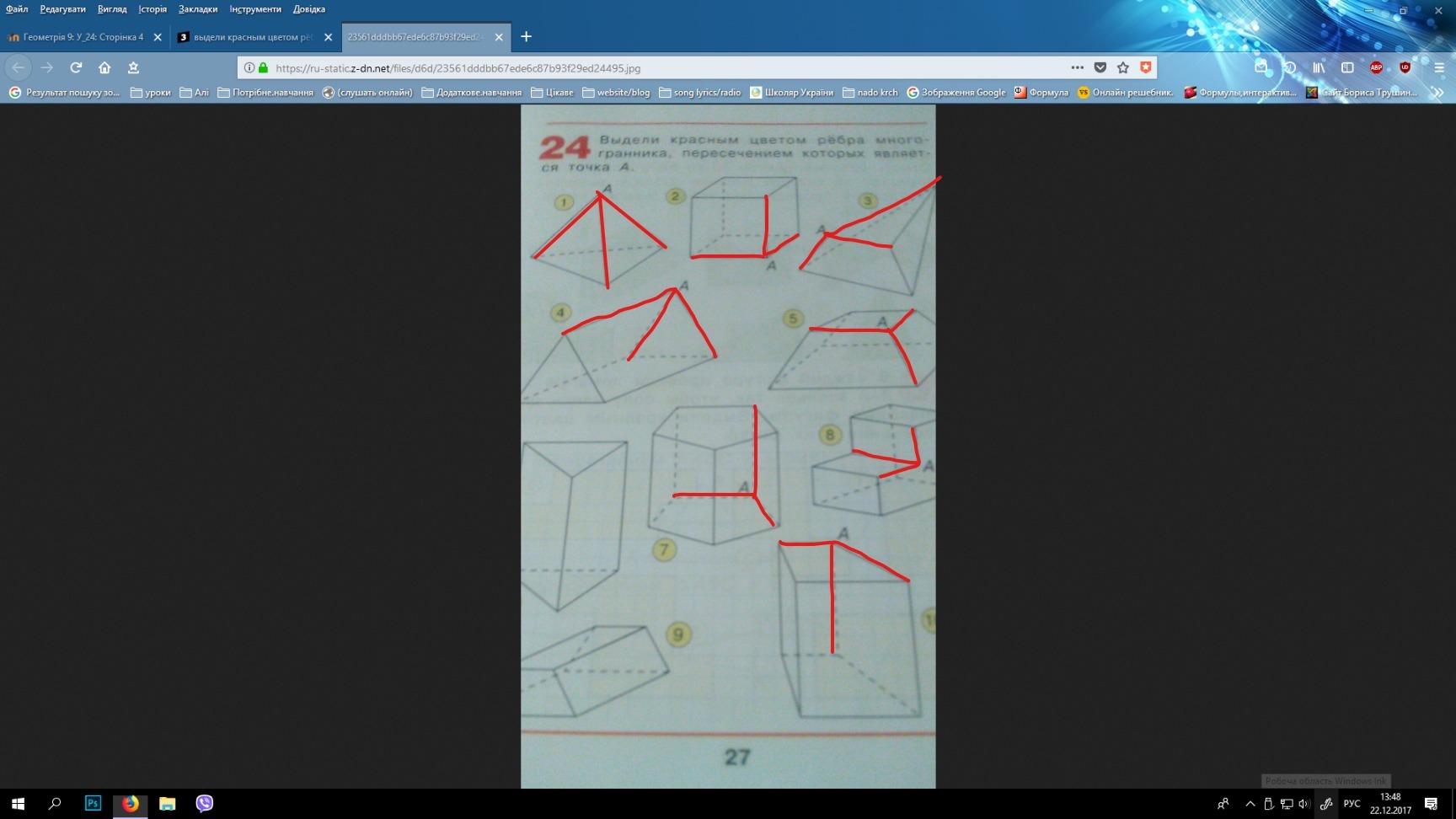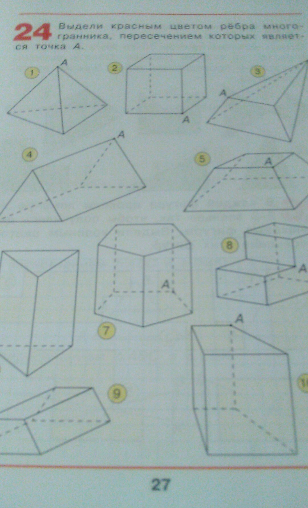 выдели красным цветом рёбра многограника, пересечением которых является точка А. пожалуйста